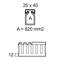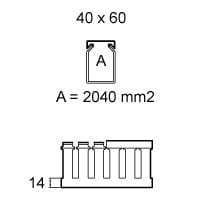 Canalette in PVC autoestinguente per il cablaggio di quadri elettrici, progettate per un'installazione sicura e ordinata. Dotate di coestruso morbido giallo sulle lamelle, misurano b40 x h60 mm con modulo 20 mm (feritoria 8 mm, lamella 12 mm). Conformi alla norma UL94 V0 e resistenti al filo incandescente fino a 960 °C (GWT EN 60695-2-11). Colore grigio RAL 7030, lunghezza 2 m, complete di coperchio.