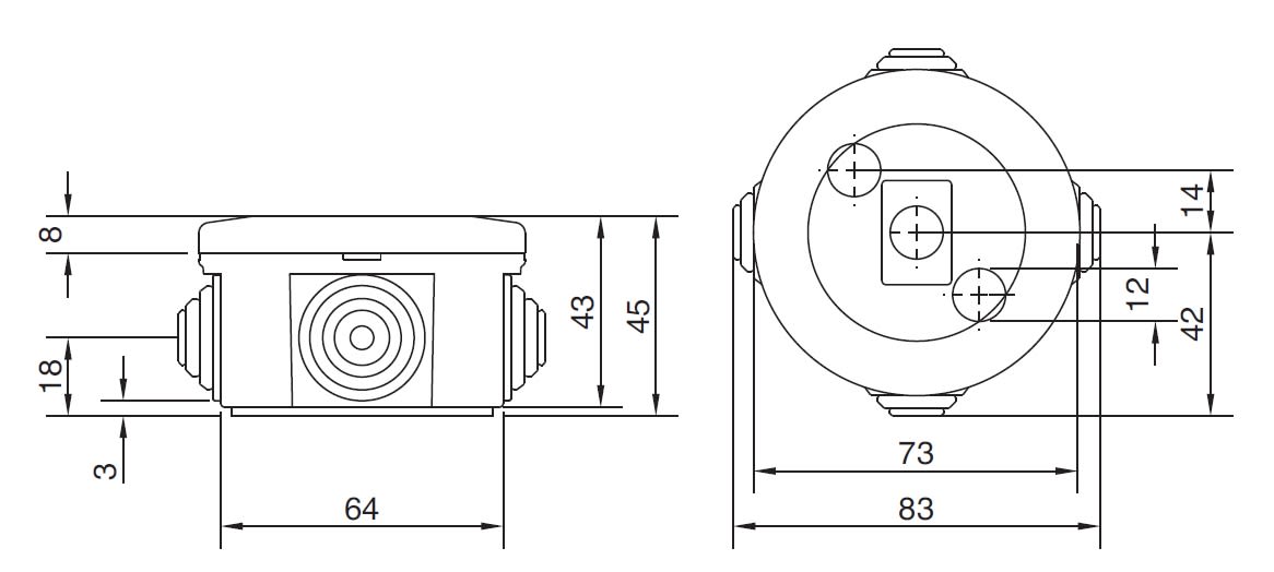 Kabelabzweigkasten IP44 ABS Ø 65x35 GRAU RAL 7035