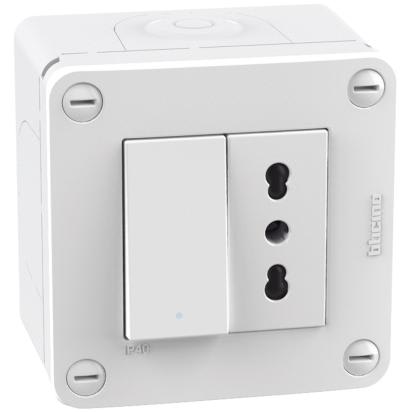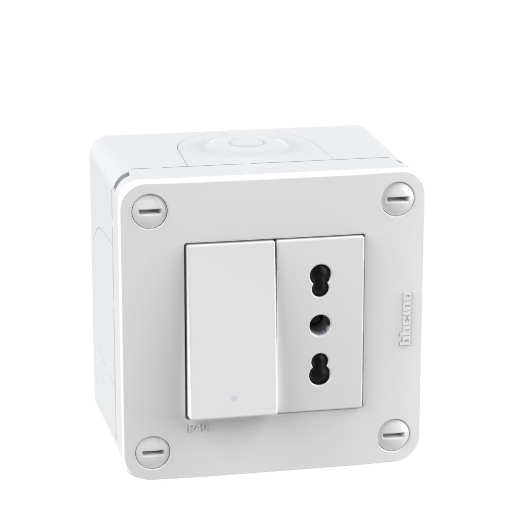 Scatola IP40 2 moduli - con interruttore + presa std. Italia 10/16A - bianco