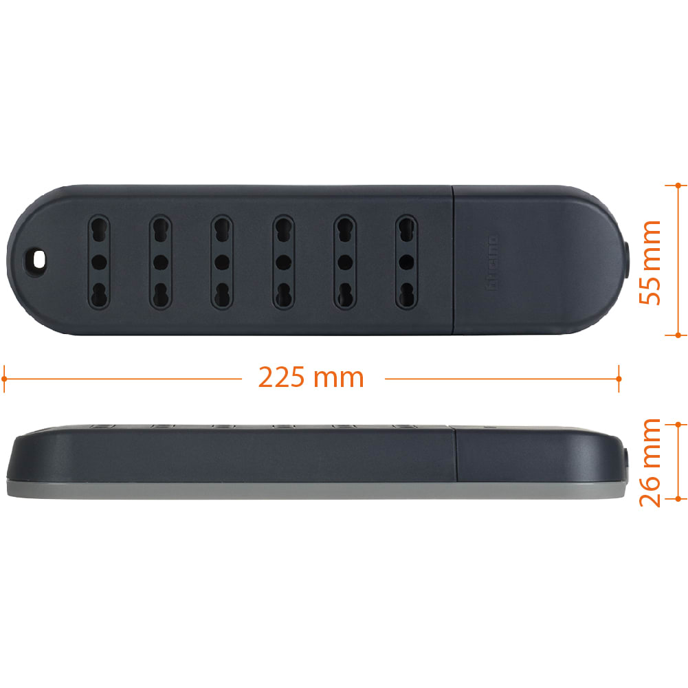BTICINO - BTI3659G SLIM6-MULTIPRESA 10/16A SENZA CAVO GRIGI