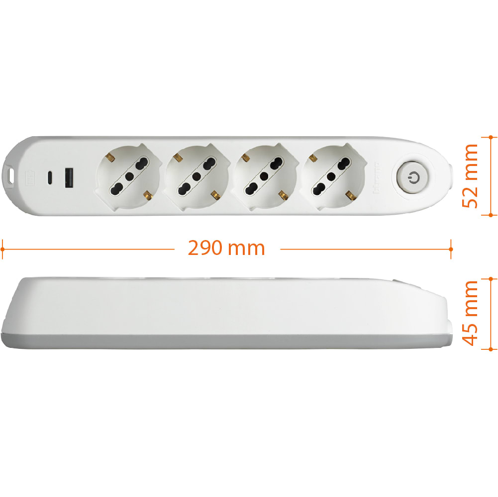 BTICINO - BTI3684DBU MULTIPRESA 4 SCHUKO/BIPAS+INTER+2USB BIA