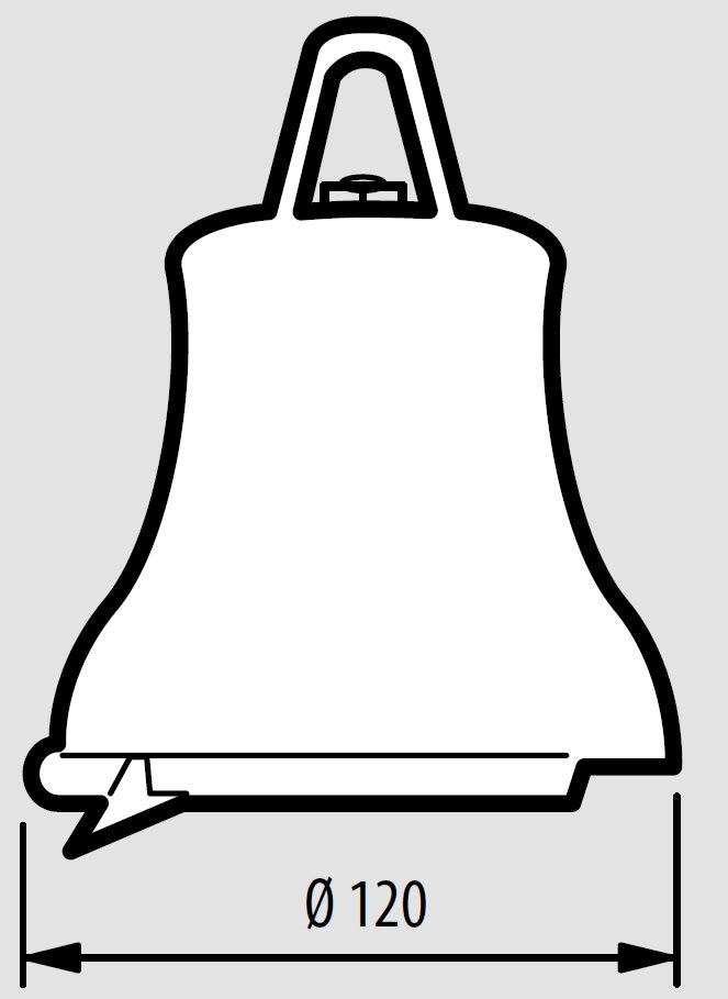 Campana in bronzo diametro 120 mm completa di staffa per fissaggio da parete. Alimentazione 230 Vac - 100 mA