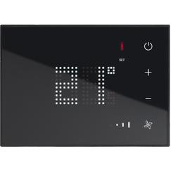 Sonda di temperatura con display Touch retroilluminato con finitura placca colore NERO in materiale plastico. Permette il controllo della temperatura di una singola zona.É dotato di una sonda di temperatura e di un ingresso per il collegamento di una linea contatti (es. contatto finestra).Permette la gestione di diverse tipologie di impianto e la regolazione della velocità della ventola in caso di impiego di Fan-Coils.Possibilità di funzionamento automatico (estate/inverno) con impianti compatibili.Collegamento a SCS-BUS - Dimensioni: 3 moduli.
