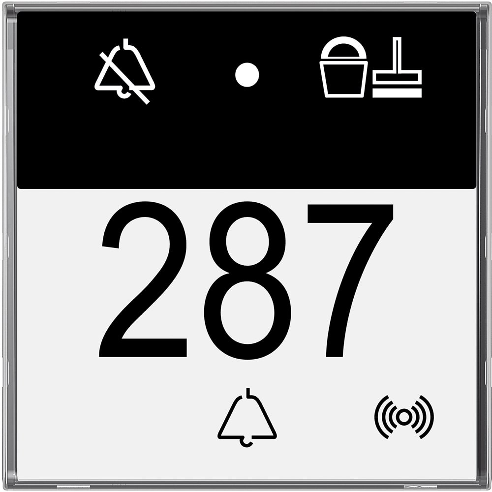 Serie Axolute - lettore di badge in tecnologia RFID + indicatore NON DISTURBARE - RIORDINARE CAMERA e Pulsante suoneria - collegamento a SCS-BUS - dimensioni: 2 moduli