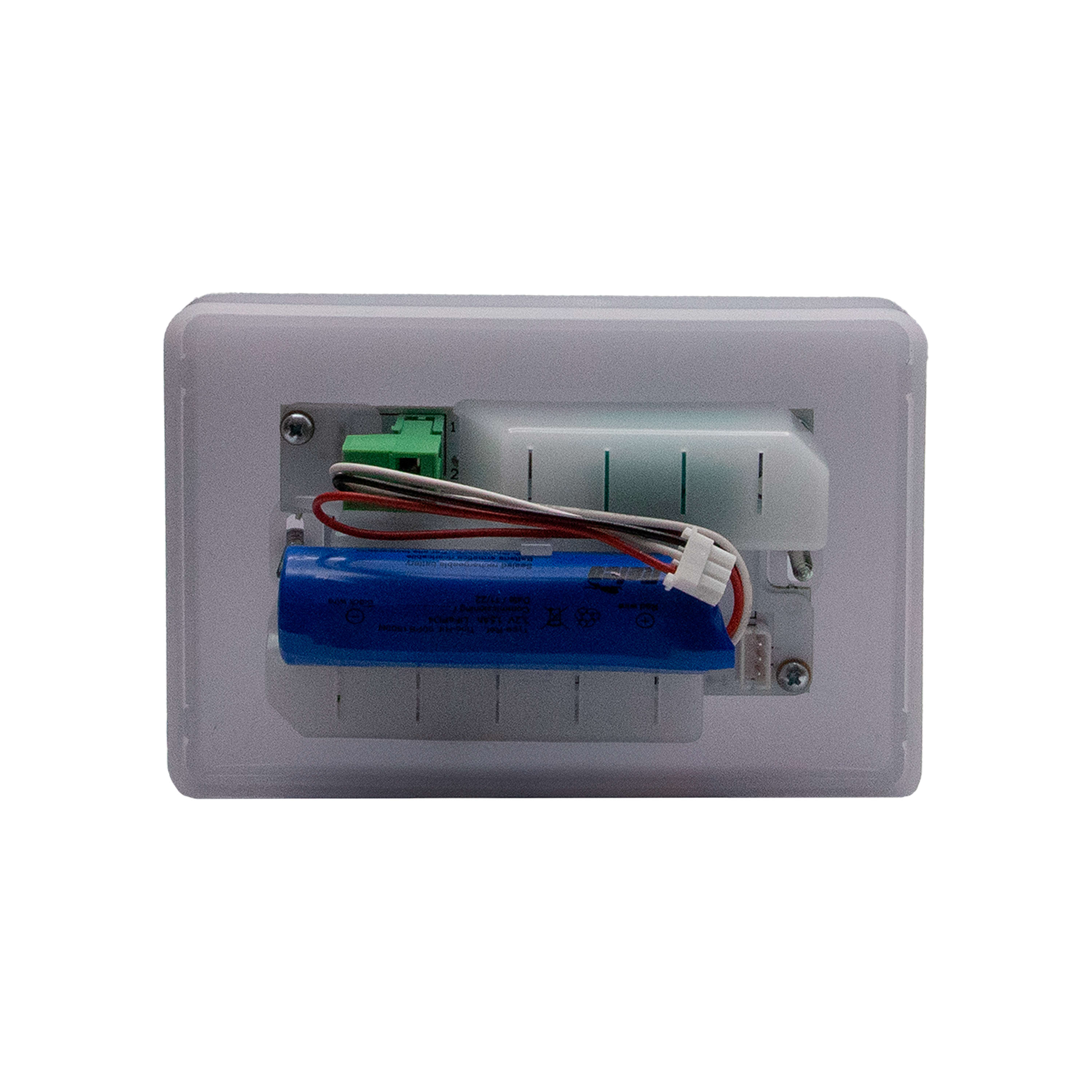 Lampada di emergenza LED con intervento automatico in caso di mancanza di tensione. LED di segnalazione presenza tensione. Batteria al Litio LiFePO4 3,2V 1,5Ah ricaricabile e sostituibile. Autonomia preconfigurata 1 ora (98 lumen) impostabile a 3 ore (70lumen) tramite apposito jumper. Ricarica completa in 24 ore. Alimentazione 230Va.c. Consumo 1,8W - 3 moduli
