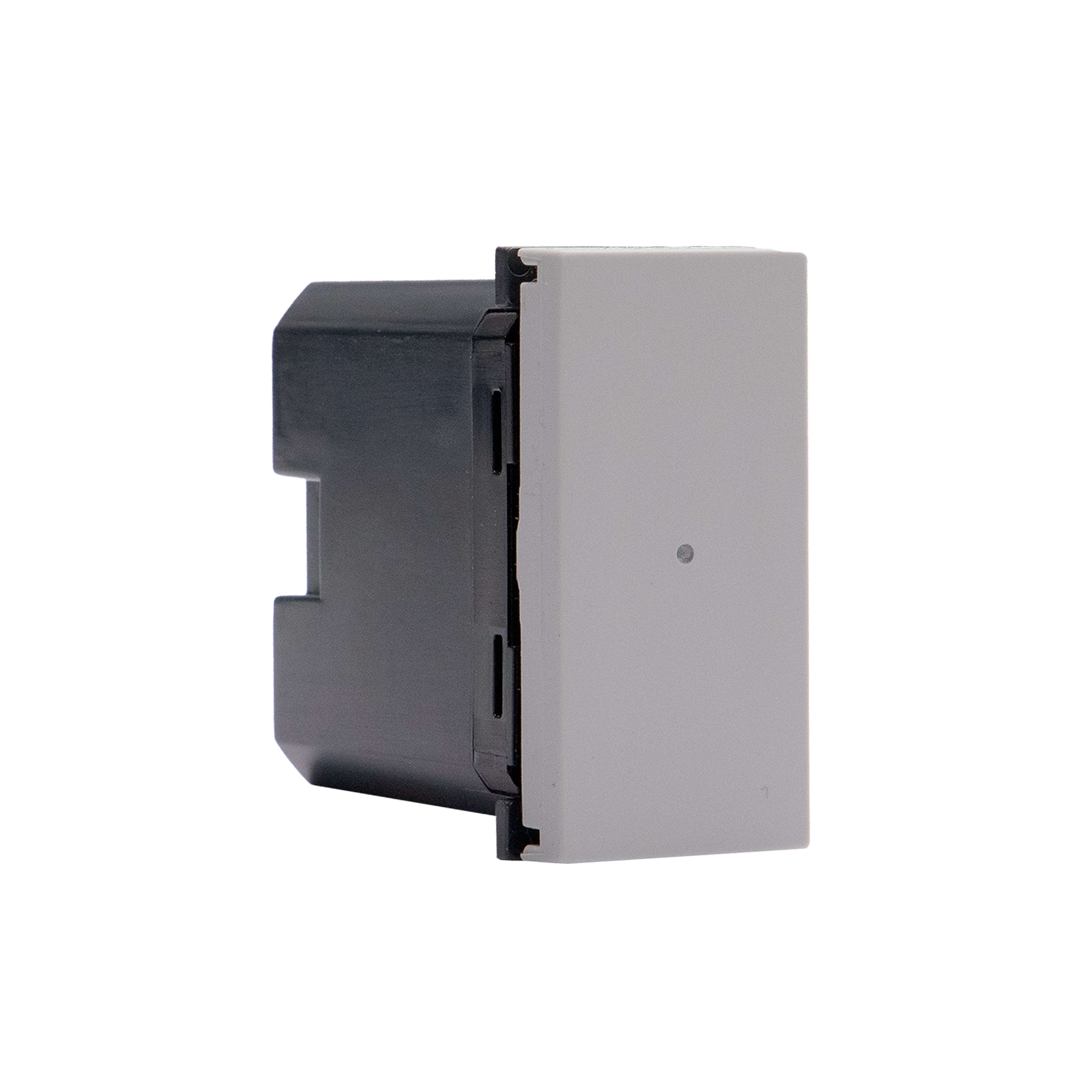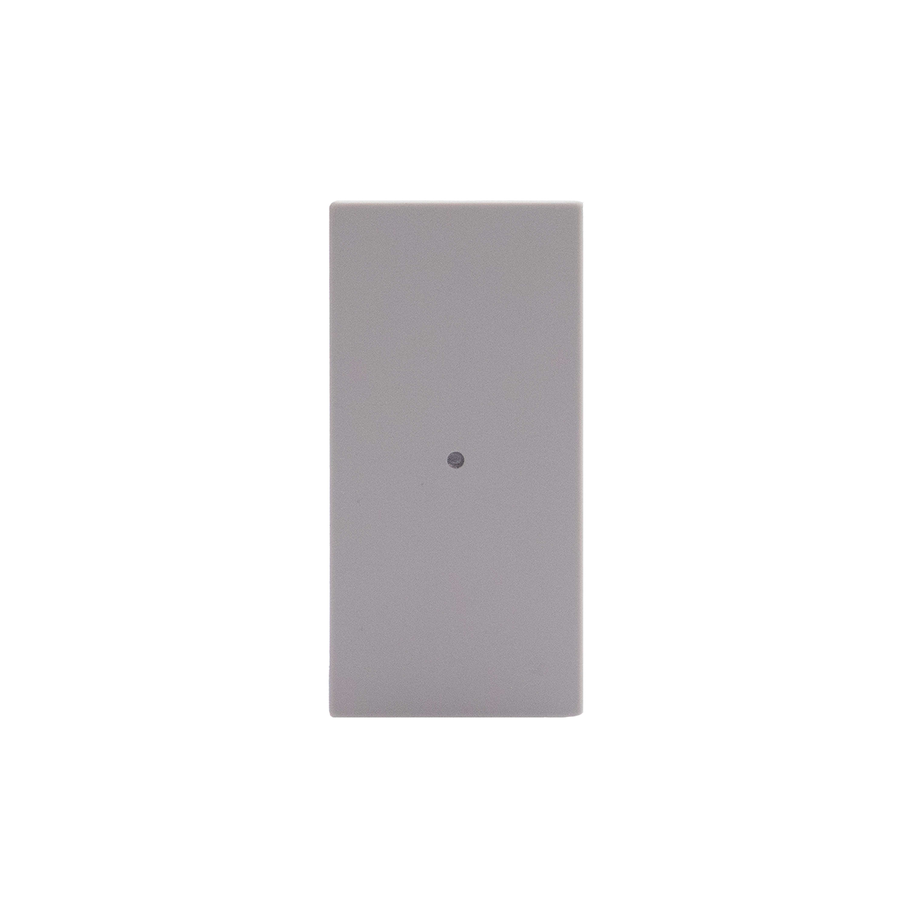 Comando luci wireless. Permette il controllo ON/OFF e dimmerizzazione di uno o più dispositivi connessi per il comando di luci. Può essereinstallato in qualsiasi scatola da incasso senza alcun cablaggio. La batteria può essere sostituita senza rimuoverlodal supporto. LED integrato per la segnalazione batteria scarica. Alimentazione a batteria 3 V tipo CR2032 (fornita a corredo) con autonomia di 8 anni - Ingombro 1 modulo - grigio