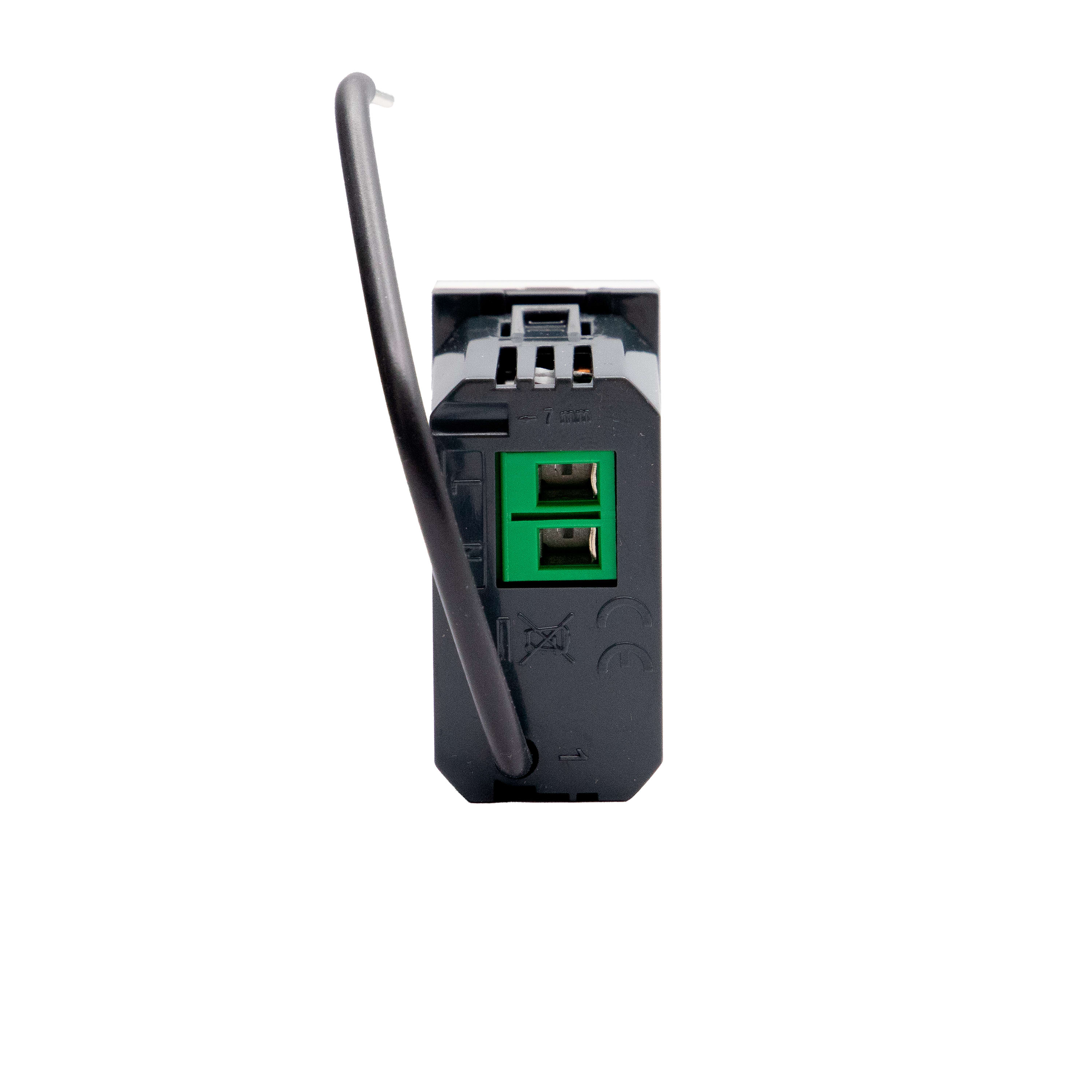 Modulo per presa connesso. Collegato ad una presa di corrente, consente il controllo remoto di dispositivi elettrici e di controllarne il consumo (istantaneo, giornaliero, mensile). È inoltre possibile ricevere notifiche in caso di consumi anomali. Compatibile con qualsiasi dispositivo elettrico con potenze fino a 3680W con assorbimento 16 A (protetto dai sovraccarichi). È dotato di un LED blu che si illumina quando la presa è accesa, configurabile dall’APP Home + Control. Può essere associato con comandi luci wireless. Alimentazione 110-230Vac - 1 modulo - bianco