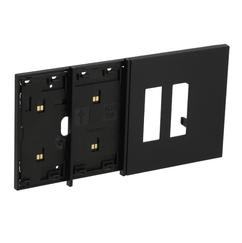 Frame elettrificato con mostrina doppia presa Italia, per l’installazione di 2 comandi digitali e di 2 prese (articoli compatibili: KG4033, KG4002, KG4113, KG4180). Installazione in scatola da 4 moduli con supporto K4704. Colore nero.