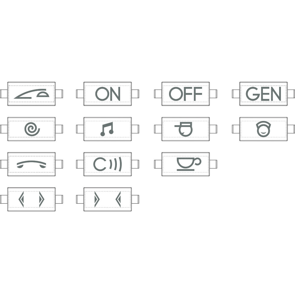 kit di lentine per copritasto personalizzabile - 13 simboli grafici - 5 per tipo (per comandi assiali) - Antracite