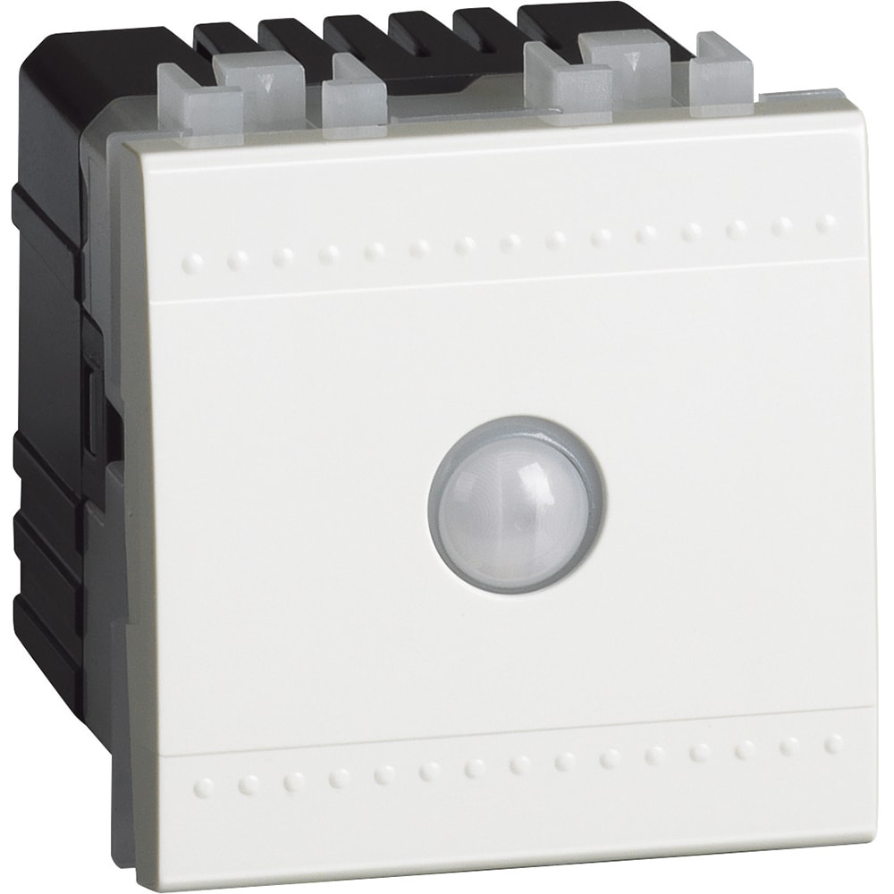 deviatore energy saving - S’installa e funziona come un tradizionale interuttore/deviatore, ma permette lo spegnimento automatico della luce dopo 10 minuti, se nessuno transita davanti al sensore IR incorporato. Il sensore IR ha una portata di 8 metri e un\'ampiezza di 160° - Compatibile con tutte le lampade: - 12-150W alogene o ad incandescenza; - 2-150 VA: lampade con ballast, elettronico o ferromagnetico;- 8-30 W (o 650mA): LED e CFL;Possibilità di mixare tutti i tipi di lampade sullo stesso circuito - É ideale per i luoghi dove la luce resta accesa inutilmente, quali: camera dei bambini, corridoi, box, cantine, ecc. - 2 moduli