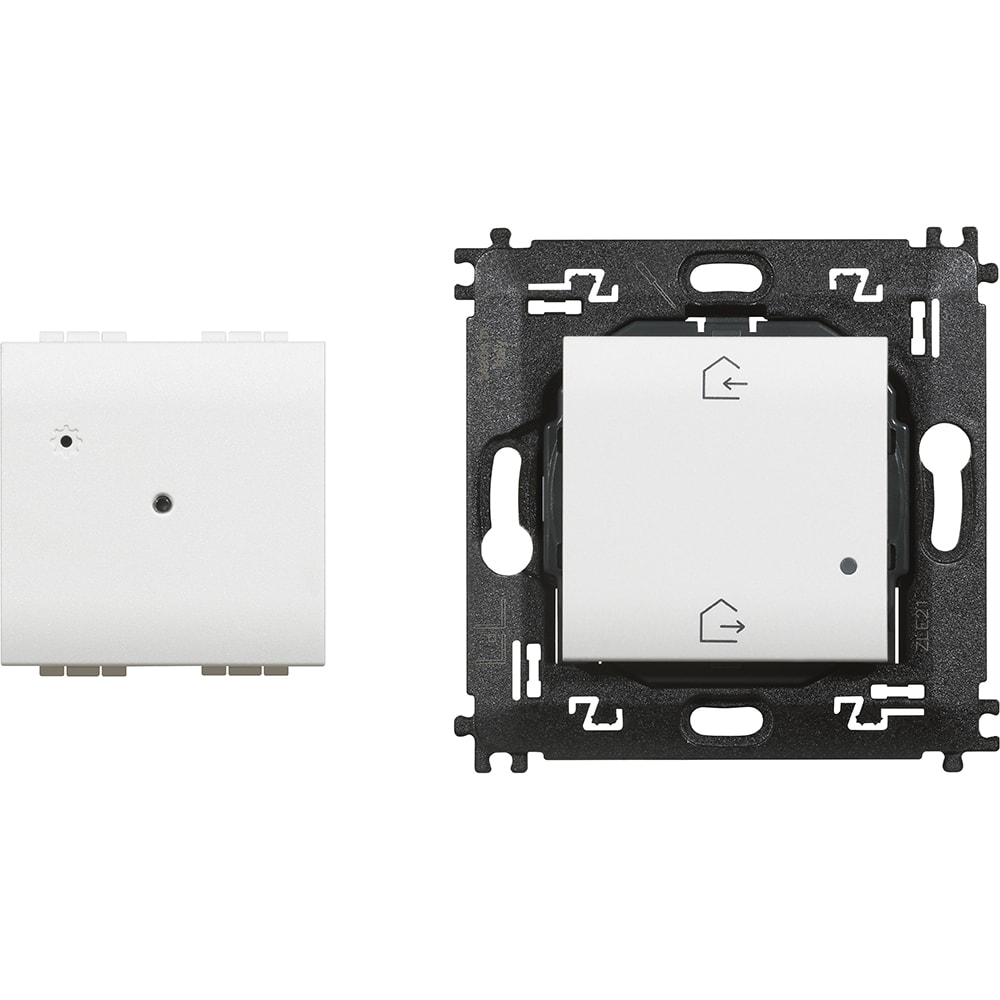 Gateway per creare un installazione connessa della casa. Può essere usato per controllare luci, tapparelle e apparecchiature elettriche collegate a prese connesse utilizzando lo smartphone e l’app Home + Control, gli assistenti vocali e il comando generale all’ingresso della casa. Fornito con il comando scenario master Entra&Esci wireless N4570CW necessario per la procedura di associazione di tutti i dispositivi connessi. Alimentazione 110-230 Va.c. - 2 moduli.