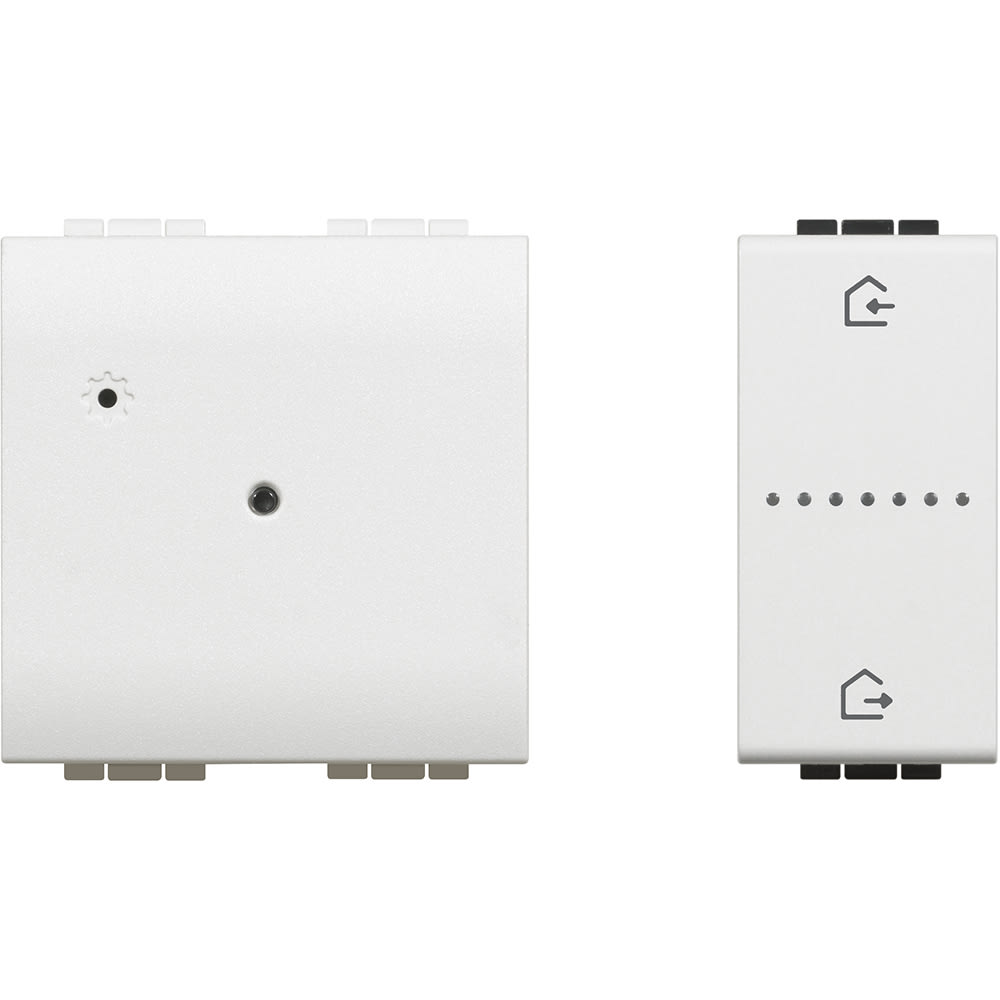Gateway per creare un installazione connessa della casa. Può essere usato per controllare luci, tapparelle e apparecchiature elettriche collegate a prese connesse utilizzando lo smartphone e l’app Home + Control, gli assistenti vocali, il comando generale all’ingresso della casa. Fornito con il comando scenario Entra&Esci wireless LN4570CWI da incasso necessario per la procedura di associazione di tutti i dispositivi connessi. Alimentazione 110-230 Va.c. - 2 moduli.