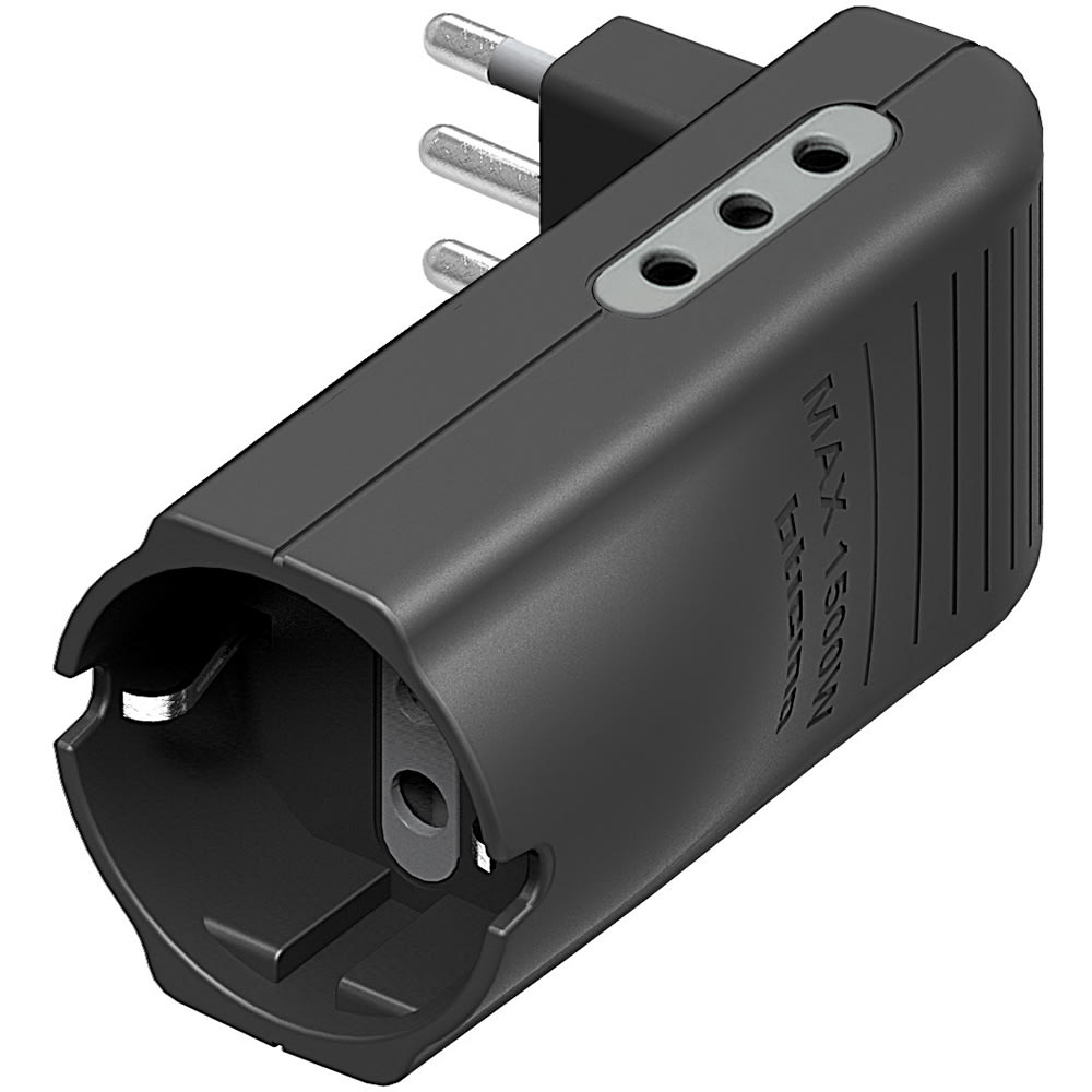Adattatore salvaspazio Corner con 2 prese 10A e 1 presa tedesca tipo P30 e spina 10A di colore antracite