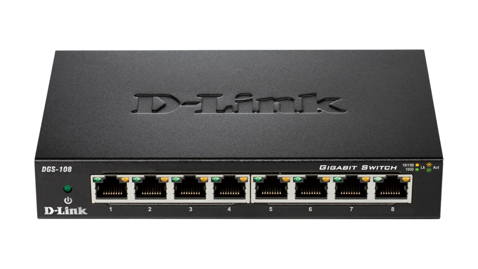 8-Port Gigabit Unmanaged Desktop Switch DGS-108 • 8x Gigabit Ethernet ports • Plug & play for instant connectivity • 5-Year D-Link Warranty