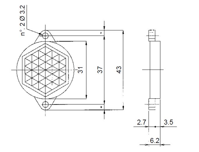 Riflettore prismatico Ø 23 mm con supporto Ø 31 mm.