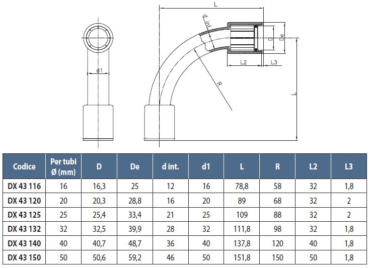 Per diametro del tubo nominale: