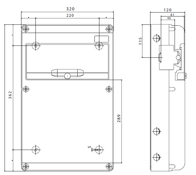 Quadro stagno Q-DIN 14 moduli vuoto in plastica grigio RAL 7035 IP65. • Numero di IEC 309/IB alloggiabili: 3 IB Verticali 16/32 A IP 67 • Numero di coperchi ciechi in dotazione: 1 IB 16/32A