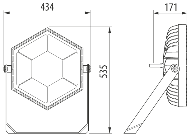 Apparecchio per illuminazione industriale a Led realizzato in alluminio pressofuso EN AB 46100 con verniciatura a polvere di poliestere. Una corretta illuminazione è fornita da un sistema ottico composto da differenti versioni di lenti e sigillato da un vetro temprato extrachiaro di 4mm. Guarnizioni in silicone, dispositivo di respirazione e anticondensa in Goretex, connettore a tenuta stagna per cavi da 1,5 mm² e viteria esterna in INOX. Con staffa. Tipo alimentatore Driver Led Dali. 112W 15000 lm 4000K. 90°