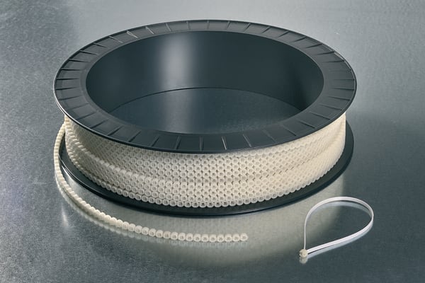 Innovativo sistema di legatura in due pezzi: nastro e chiusure. Nastro con dentatura esterna, protegge l'isolamento dei cavi. Disponibile in bobine da 500m e 5.000 chiusure. Il nastro a dentatura esterna è perfetto per cablaggi delicati e può essere utilizzato per la legatura e il fissaggio di cavi e tubi flessibili o per la chiusura di sacchetti di plastica.Soprattutto per le applicazioni di grossi volumi, come per esempio nell'assemblaggio cavi, in automotive, nell'industria e nel settore del packaging.