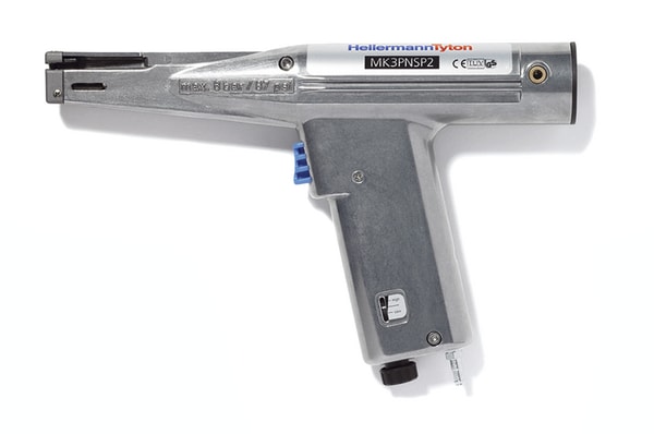 Utensile pneumatico installa fascette . Realizzato in metallo, molto resistente. Per fascette fino a 4,8 mm di larghezza. Tensionamento costante e taglio automatico a filo della testa. Forza di tensione a regolazione costante. Alta velocità di applicazione. Affidabile, richiede poca manutenzione. Alimentato con aria compressa ad una pressione di 6 bar, l'utensile MK3PNSP2 offre appieno i suoi benefici nella produzione di serie, sia negli assemblaggi in linea che nella realizzazione di cablaggi.