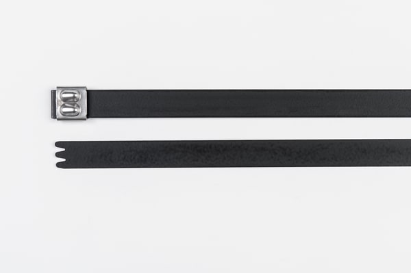 Fascetta in acciaio inox AISI 316 della serie MBT con rivestimento in poliestere. Meccanismo autobloccante brevettato. Può essere avvolta attorno al fascio ed inserita nella testa per due volte. Resistente alla corrosione. Resistente agli agenti atmosferici. Eccellente resistenza agli agenti chimici. Resistente alle alte temperature. Non brucia. Le fascette in acciaio inox vengono utilizzate in tutte le applicazioni che richiedono un elevato carico di rottura, affidabilità e resistenza al fuoco. La serieMBT può essere utilizzata nell'industria chimica e sulle piattaforme petrolifere, come anche nei settori del trasporto di massa, cantieristica navale, costruzioni, installazioni radio, teatri e fiere. In caso di incendio i cavi restano in posizione, senza il rischio di intralciare le uscite di emergenza.
