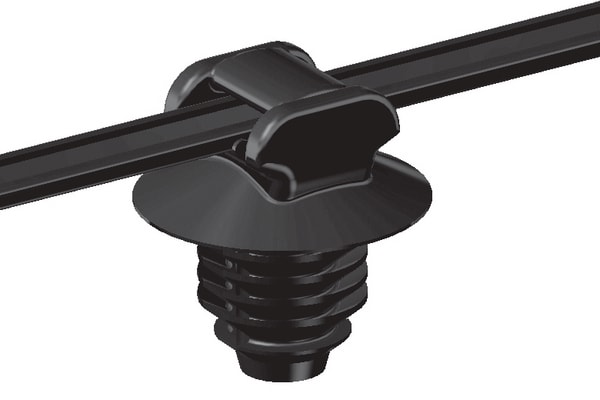 Fascette 2-piece preassemblate con ancoraggio a pino. La testa della fascetta può essere riposizionata dopo la legatura. Facile da assemblare, anche senza attrezzo. Il disco è in grado di controbilanciare le pressioni sulla fascetta e minimizza l'ingresso di polvere, sporco e acqua. L'ancoraggio a pino può essere utilizzato con pannelli di diversi spessori. Adatte ai fori filettati. Disegnate inizialmente per il fissaggio di cavi nei cablaggi del settore automotive, la semplicità e la facilità di utilizzo, hanno reso queste fascette utilizzabili ovunque: dagli aerei, alle lavatrici e agli elettrodomestici in genere.