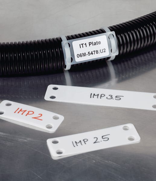 Targhette serie IMP e IT per identificare fasci di cavi o superfici piane. Da identificare con etichette stampate o con i pennarelli T82. Da fissare con fascette o rivetti. Disponibili su richiesta con stampa personalizzata. Le targhette della serie IMP e IT sono ideali per essere applicate a larghi fasci di cavi sia prima che dopo la terminazione. Possono altresì essere rivettate dove necessario.Vengono fissate tramite fascette di larghezza massima 4,8 mm. Se necessario si può scrivere direttamente sulle targhette utilizzando i pennarelli indelebili della serie T82.