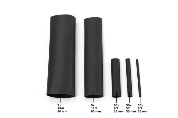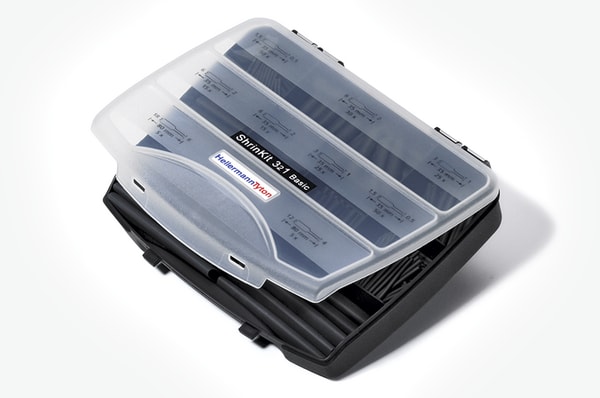 Kit compatto e pratico. Guaina termorestringente nera. Disponibile in range da 1,5mm a 18,0mm. 220 spezzoni in cinque formati. Con ShrinKit 321 HellermannTyton ha imposto un nuovo standard per le guaine termorestringenti: la gamma di guaine termorestringenti ShrinKit con il loro fattore di restringimento 3:1 copre molteplici applicazioni.