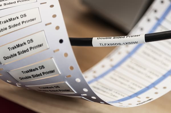 Rapporto di restringimento 2:1. Zero alogeni. Bassa propagazione, densità e tossicità dei fumi. Pretranciati a 50 mm, 25 mm e 16 mm come standard, altre lunghezze disponibili su richiesta. Disponibile in bianco e giallo. Per diametri di cavo da 38,1 mm a1,2 mm. Consegna in comode scatole per lo stoccaggio. Il TLFX DS è un materiale termorestringente zero alogeni approvato per l'industria ferroviaria Europea con rapporto di restringimento 2:1, fornito pretagliato e disposto in un comodo formato a scaletta Ladder Style. Le speciali caratteristiche del materiale mostrano una bassa propagazione, densità e tossicità dei fumi. Il formato prespezzonato non solo permette la stampa su entrambi i lati del marcacavo, ma permette anche all'utente di scegliere e prelevare con facilità il marcacavo desiderato. La guaina viene preparata in modo da permettere una performance di stampa eccellente in ogni momento grazie alle stampanti di HellermannTyton.
