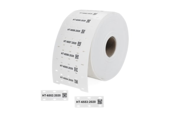 Targhetta limited fire hazard. Zero alogeni. Per cavi di dimensioni elevate o fasci di cavi. Stampabile a trasferimento termico o a incisione laser. Elevata flessibilità e resistenza meccanica. Fornita in bobine in comodi imballi. Le TAGLF sono delle TIPTAG sviluppate per l'utilizzo in applicazioni legate al trasporto di massa e specificatamente come prodotto rotabile. Il materiale è composto di una poliolefina reticolata zero alogeni a bassa propagazione della fiamma, bassa tossicità e densità dei fumi.Queste targhette vengono fissate sui cavi tramite fascette e sono quindi adatte anche a lavori di retrofit. Il materiale viene condizionato per essere stampato sia a trasferimento termico che con incisione laser. Vengono fornite in un pratico formato a scaletta da cui prelevare le singole targhette per l'applicazione tramite fascette. Da stampare con la gamma premium di stampanti a trasferimento termico e ribbon HellermannTyton.