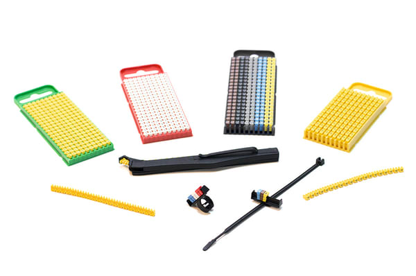 Segnafili prestampati in nylon veloci e semplici da utilizzare. Ideale per le terminazioni già installate o per manutenzioni e riparazioni. I segnafili si incastrano fra loro per mantenere il testo allineato. Segnafili resistenti alle vibrazioni, i WIC aderiscono perfettamente al cavo. Gli utensili WIC per le tre dimensioni contengono 20 marcacavi. Il sistema di aggrappatura si chiude sul cavo e ne impedisce anche la rotazione. Disponibili in giallo, bianco e nel colore del codice delle resistenze. Disponibili anche i più diffusi testi a 2 caratteri L1, L2, L3, PE nei colori giallo o codice resistenze. Il colore del dispenser identifica la dimensione del segnafilo: WIC0 (verde), WIC1 (rosso), WIC2 (blu), WIC3 (giallo). Due accessori permetteono di identificare i cavi da 6 mm² a 25 mm² (WICA-AC10-25) e fino a 95 mm² (WICA-ACT-BK). I segnafili WIC possono essere applicati manualmente o con l'ergonomico utensile applicatore WIC tool. Basta semplicemente inserire la striscia di segnafili all'interno dell'utensile applicatore, premere il segnafili sul cavo, girare ed applicare il successivo. Una volta applicati tutti i segnafili farli scorrere uno vicino all'altro per agganciarli tra loro. I marcacavi per la fibra devono essere applicati a mano. I due accessori WICA (pag. 496) sono ideali per identificare cavi con diametri maggiori (6mm²-95mm²)