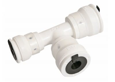 Raccordo a T ridotto centrale e laterale Vision La composizione del raccordo push-fit mostra che Henco Vision è il risultato di un intensivo sviluppo del prodotto. Tutte le parti sono realizzate con altissima precisione e con i migliori materiali. Il corpo è realizzato in PVDF, materiale sintetico di alta qualità con una combinazione unica di proprietà: Resistente alle alte pressioni e temperature; Eccellente resistenza meccanica; Flessibile fino a 10°; Approvato per l'uso nei sistemi di adduzione di acqua potabile