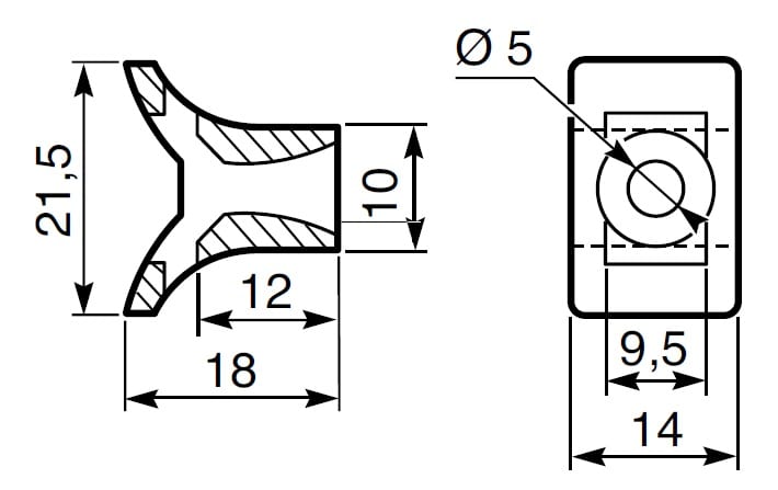 Supporto a vite per collari larghezza 9 mm max. Per tasselli filettati diametro 6,35 e 7 mm e viti da legno diametro 5 mm