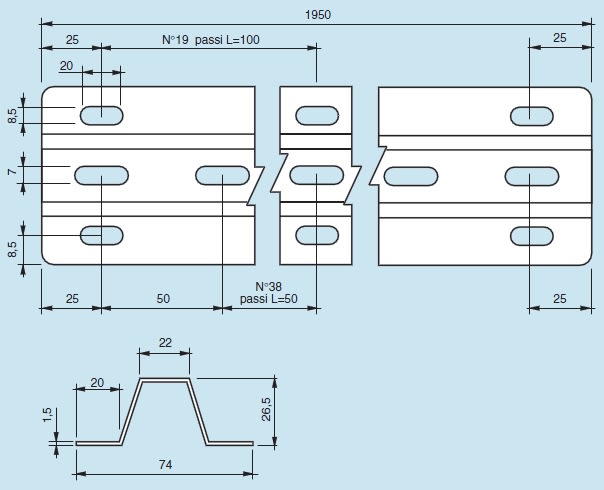 Larghezza della fessura - 22 mm