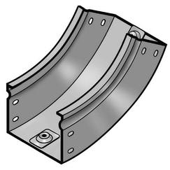 Curva in salita a 45 solo base. Altezza: 75 mm. Larghezza: 300 mm. Finitura Z: Acciaio zincato sendzimir.