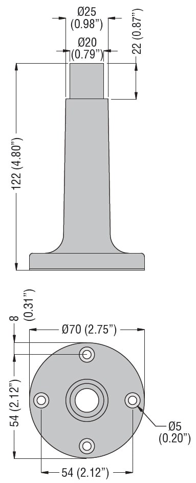 BASE DI FISSAGGIO. Ø62MM, SU SUPPORTO ORIZZONTALE, PLASTICO,COLORE GRIGIO CON PROLUNGA 100MM.
