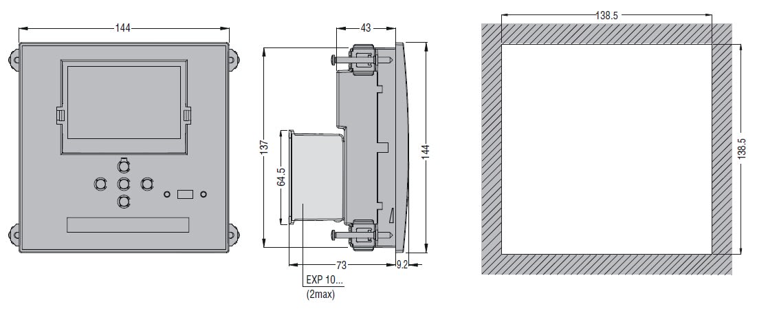 COMMUTATORE DI RETE AUTOMATICO CON PORTA OTTICA PER IL CONTROLLO DI 2 LINEE (144X144MM), ALIMENTAZIONE 110...240VAC E 12/24VDC, ESPANDIBILE CON MODULI DI ESPANSIONE EXP...