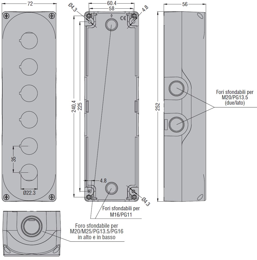 Diametro delle aperture - 22 mm