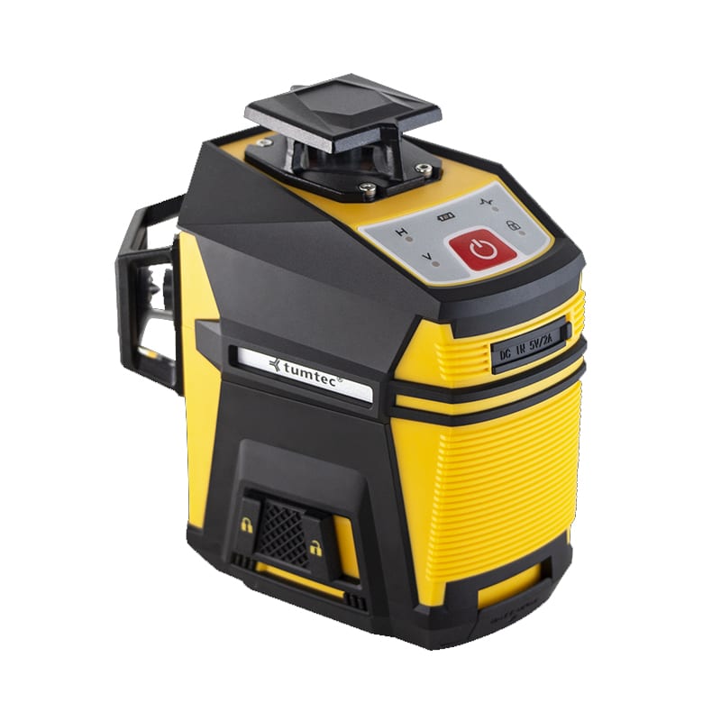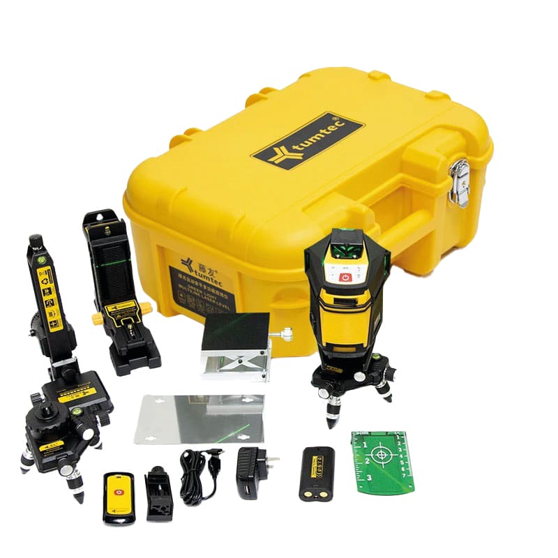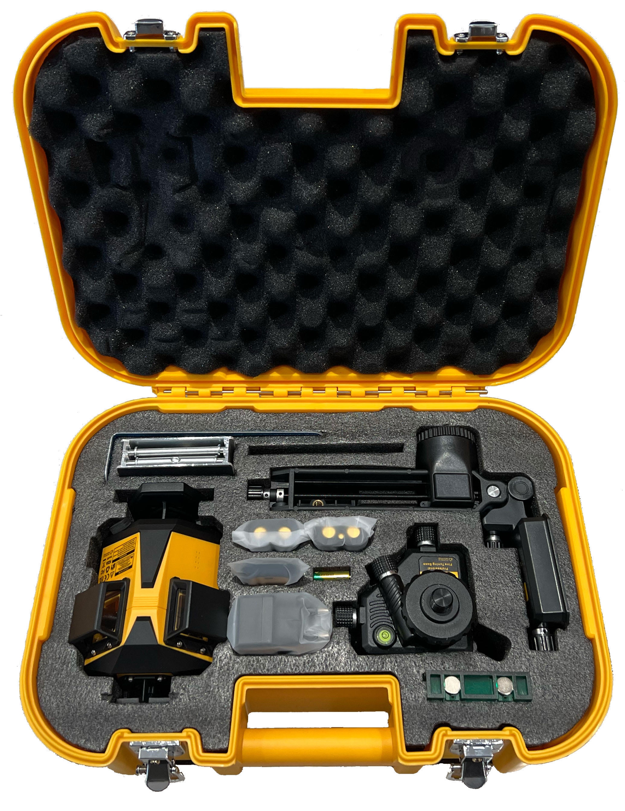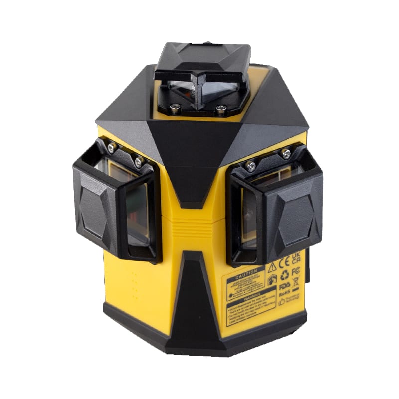 Livella laser a 12 linee, raggio laser a luce verde per una maggiore visibilita, raggi 3x 360?, 2x4 linee verticali + 1x4 linee orizzontali alte, laser classe 2 con precisione +/- 3mm@10m, autolivellante in 3 s, distanza di lavoro > 15m, utilizzo ambienti interni con grado di protezione IP54. Munita di telecomando. Peso 845g