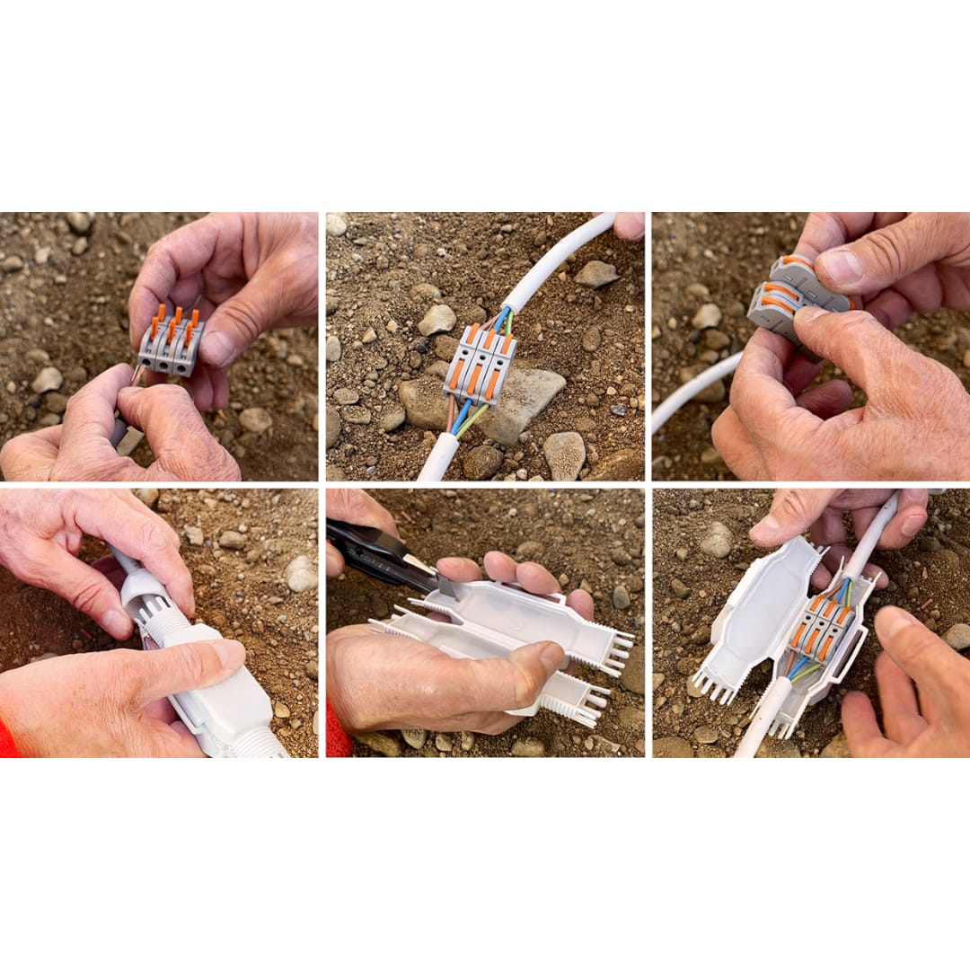Giunto preriempito con gel per connessioni in linea di cavi 0.6/1kV. Grado di protezione IP68/IP69. Ideale per connessioni in presenza di umidita o acqua anche interrate Pronto all'uso, riaccessibile, ispezionabile e installabile ad ogni temperatura. Il gel, atossico e non classificato come pericoloso, e privo di scadenza e non perde la sua elasticita nel tempo. Dimensione (mm): 145x46x35. Connettori a leva inclusi. Sezione (mm2): 5x4 Diametro min.-max. cavi (mm): 14-19