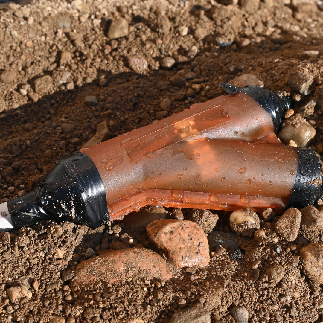 Giunto pronto all'uso, con resina siliconica sigillante monocomponente senza scadenza, atossica e non classificata come pericolosa, per connessioni in linea di cavi multipolari 0.6/1kV. Ideale per uso interrato e sommerso. Dimensione (mm): 180x50. Include il separatore 4x e una morsettiera 5x2,5-6 mm2.