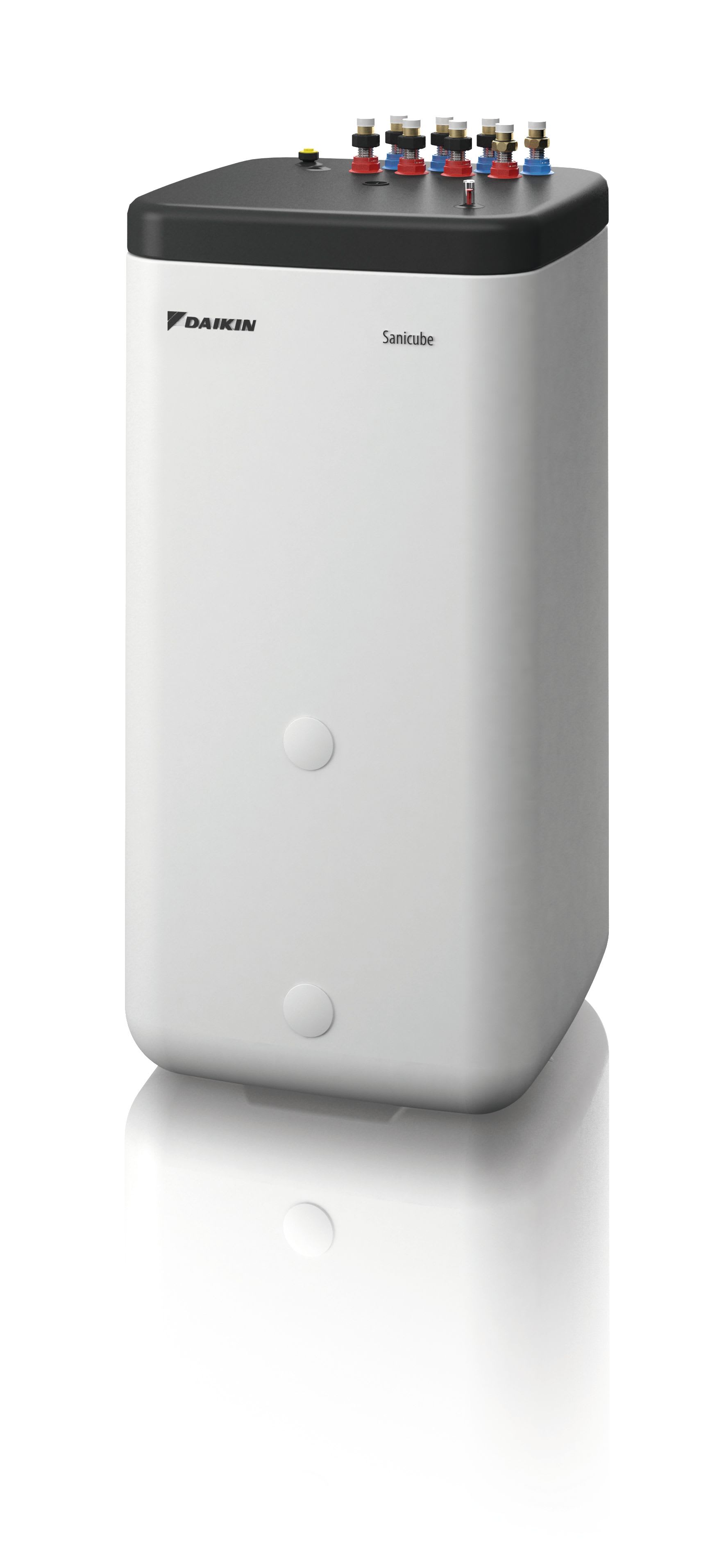 DAIKIN propone Accumulatore di calore per produzione di acqua calda sanitaria Sanicube Accumulatore d'energia ad alto rendimento da 500 litri per la produzione di acqua calda sanitaria, integrazione del riscaldamento e per funzionamento bivalente con generatore di calore supplementare. - Accumulatore di calore in plastica con scambiatori termici in tubo corrugato in acciaio inossidabile - Capienza 500 litri - Combinazione tra accumulatore di energia e scaldacqua istantaneo per la produzione di acqua calda sanitaria - Igiene dell'acqua ottimale - Opzione solare integrata per sistemi solari termici Drain-Back (DB) o in pressione - Possibilità di combinare più serbatoi di accumulo per costruire sistemi in grado di soddisfare grandi utilizzi di acqua calda