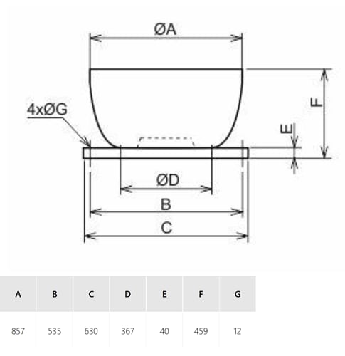 Torrino estrattore con scarico VERTICALE, girante a pale rovesce protetta da una griglia di sicurezza, basamento in acciaio zincato, cappello in alluminio e motore a rotore esterno IP54, F S&P modello CRVB/6-450 N (230V50/60HZ) N8