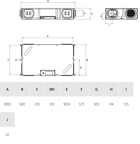 Recuperatore di calore ad alta efficienza a basso profilo per installazione nel sottotetto