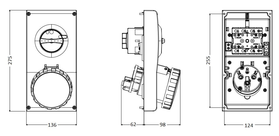 SCAME PARRE SPA - SCA405.6378 PRESA INCASSO OMNIA 63A 2P+T 9H IP67
