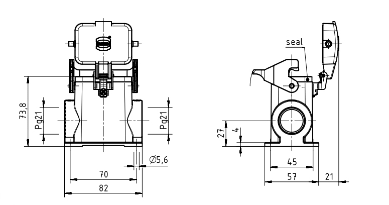 CUSTODIA FISSA+COPERCHIO 1 LEVA 6P PANNELLO 2 USCITE PG21