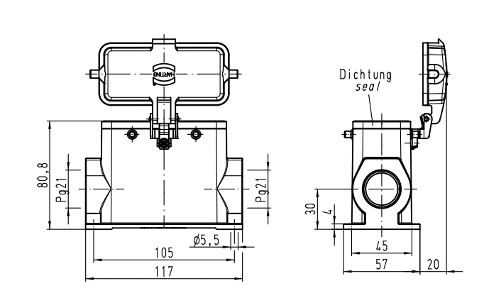 CUSTODIA FISSA+COP. 2 LEVE 16P PANNELLO 2 USCITE PG21