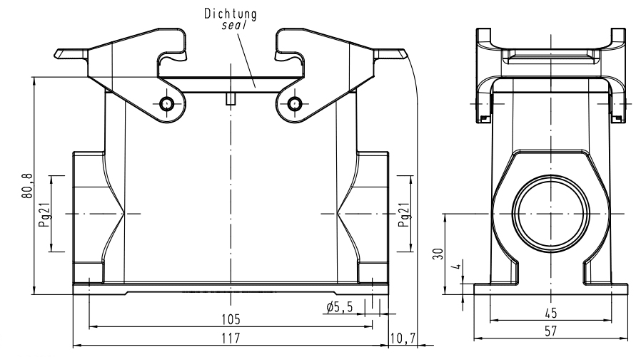 CUSTODIA FISSA 2 LEVE 16P PANNELLO 2 USCITE PG21