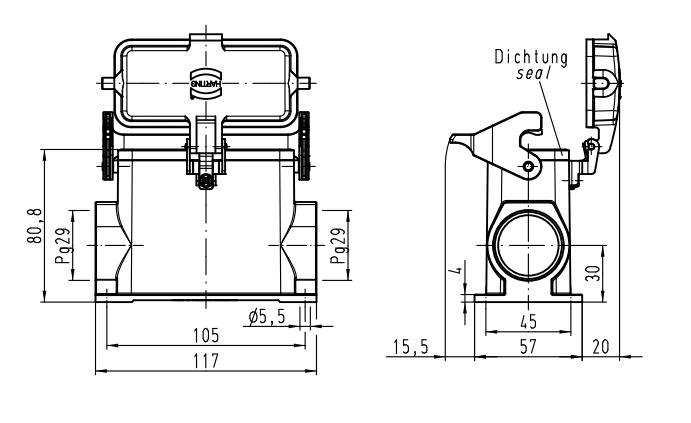 CUSTODIA FISSA 1 LEVA 16P PANNELLO 2 USCITE PG29