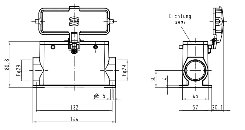 CUSTODIA FISSA+COPERCHIO 2 LEVE 24P PANNELLO 2 USCITE PG29